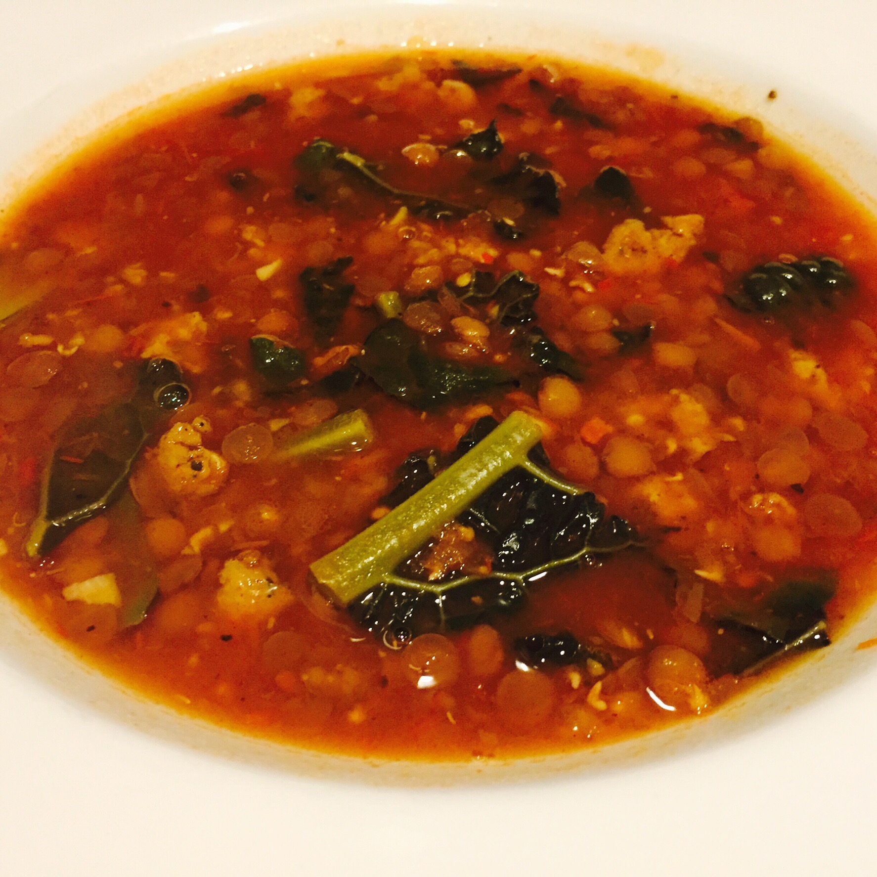 Bring stock to boil then reduce to simmer. Add sausage, kale and red wine vinegar. Simmer 10 minutes. Add lentils & fresh basil. Simmer another 15 minutes.